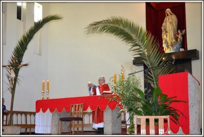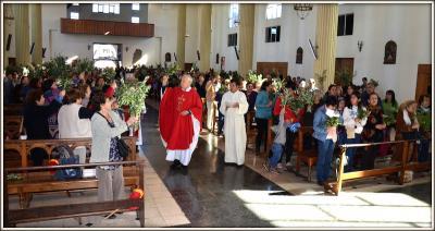 Por la mañana, la celebración comenzó (9hrs.) en la Capilla San José, y también a la misma hora, en el patio adyacente a la Capilla San Ramón Nonato, donde está ubicado la carpa de un circo, la cual fue cedida, para vivir y compartir la Santa Eucaristía de Domingo de Ramos, junto a una gran cantidad de fieles, de este sector de nuestra ciudad.