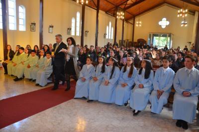 El Padre Guillermo Cartes, hace hincapié en estos niños y sus Padres, que al comenzar esta nueva etapa de sus vidas, donde empiezan a vivir esta vida Eucarística, que es una vida de Amor a Dios y al prójimo, estén apoyados por sus padres y familia acoto.