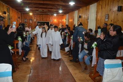 En las capillas, el 2º Domingo de Pascua (7-8 abril), 38 niños y niñas acompañados por sus padres, familiares y catequistas, cumplieron con el Sacramento de la Eucaristía, después de dos años de preparación.