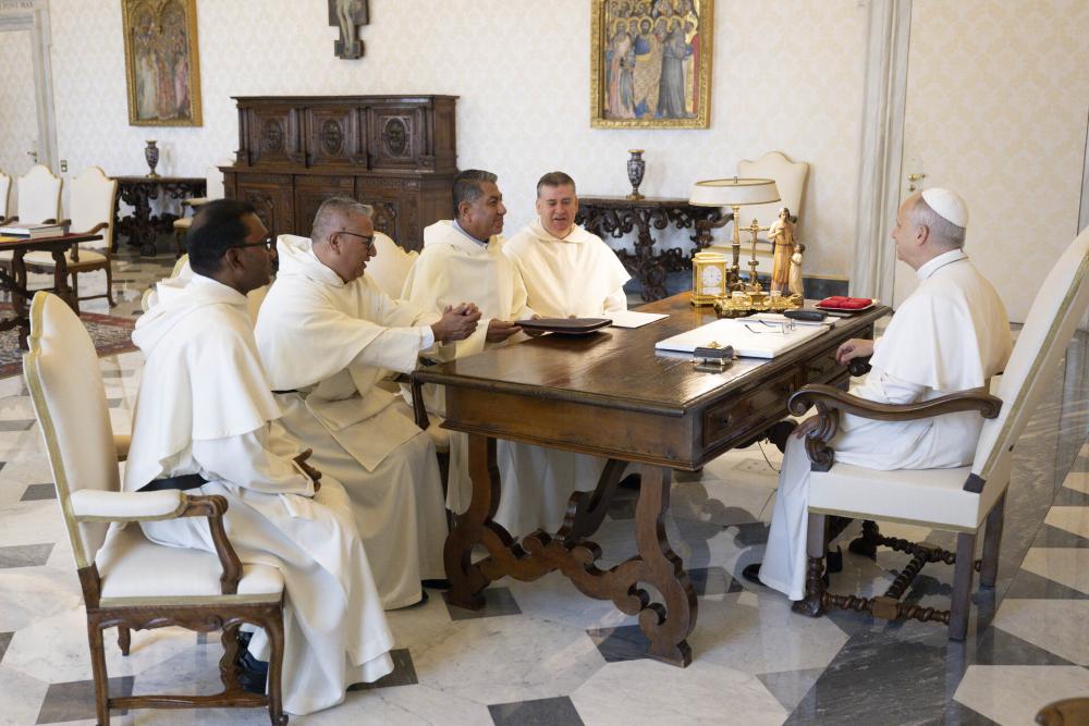 El encuentro estuvo encabezado por el Maestro General, Fr. Leoncio Osvaldo Vivar Martínez, O. de M., acompañado por los miembros del Consejo General. En su saludo al Santo Padre, expresó la alegría y gratitud de toda la Orden, reafirmando la disposición mercedaria de colaborar estrechamente con el ministerio petrino en la custodia, enseñanza y difusión de la fe cristiana.