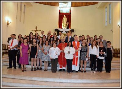 En una hermosa y emotiva ceremonia 38 adultos pertenecientes a la Capilla San Pedro Nolasco , San Serapio Scott, Nuestra Señora del Tránsito de Gleiner y la sede Parroquial, recibieron este viernes 2 de diciembre, el Sacramento de la Confirmación.